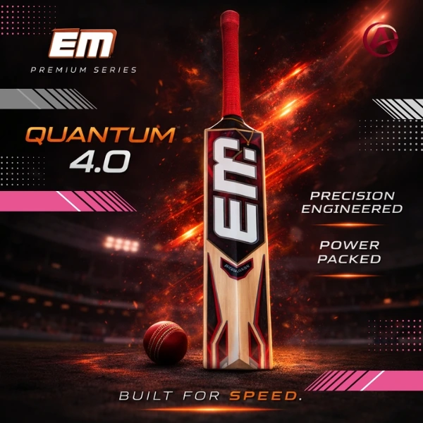 - 1 × EM Quantum 4.0 Kashmir Willow Cricket Bat – SH