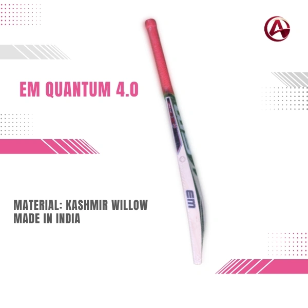 EM Quantum 4.0 Kashmir Willow Cricket Bat – SH is constructed from Kashmir Willow wood, maintaining a traditional wooden cricket bat structure suitable for regular cricket gameplay.