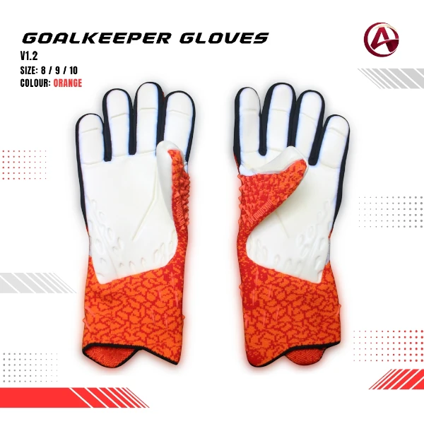 The Goalkeeper Gloves v1.2 are designed with latex palms to support reliable grip and ball handling during goalkeeping actions.